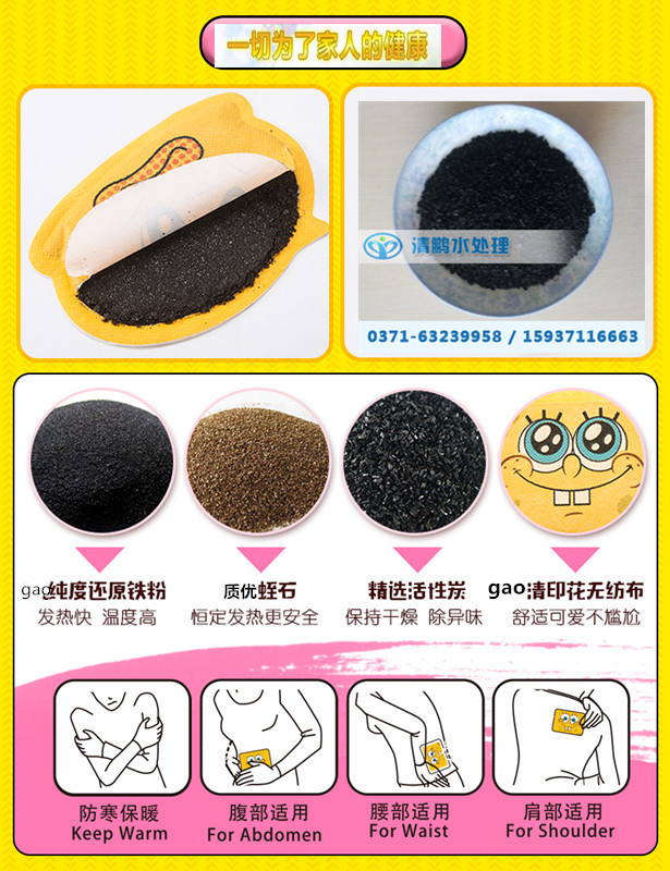 含有果殼活性炭的暖寶寶可以廣泛用于:防寒、保暖、腹部適用、腰部適用、肩部適用。