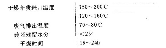 目前,我國的gao鋁球一般多采用半干成型法壓制成型,因此,高鋁球半成品料含水低,如燒成窯帶有干燥段,則可不用預(yù)先干燥而直接入窯燒成。半干機(jī)壓成型高鋁球半成品在倒煙窯內(nèi)的干燥制度一般可選擇參數(shù)如下圖。
